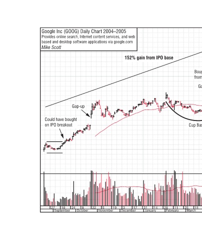 Google Inc (GOOG) Daily Chart 2004–2005 Provides online search, Internet content services, and web based and desktop software applications via google.com Mike Scott Gap-up Could have bought on IPO breakout 19 5 22 8 24 27 September 10 November October