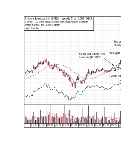 Bought on breakout from 220 30% gain 190 170 3-weeks-tight pattern 150 140 130 RS Line 120 110 100 90 80 70 3-weeks-tight 60 Volume was 360% above 50 46 average on breakout day 42 38 34 RS line new high 30 28 26 24 22 19 Volume 7,200,000 5,400,000 3,600