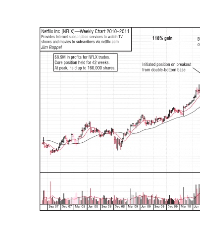Netflix Inc (NFLX)—Weekly Chart 2010–2011 Provides Internet subscription services to watch TV shows and movies to subscribers via netflix.com Jim Roppel $8.9M in profits for NFLX trades. Core position held for 42 weeks. At peak, held up to 160,000 shares. Sep 08 Jun 08 Mar 08 Dec 07 Sep 07