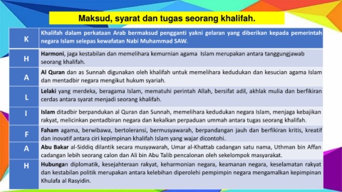 Maksud, syarat dan tugas seorang khalifah.