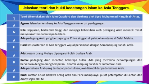 Jelaskan teori dan bukti kedatangan Islam ke Asia Tenggara.