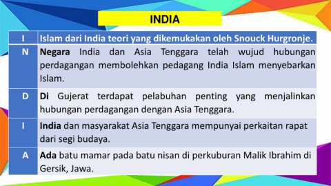 I Islam dari India teori yang dikemukakan oleh Snouck Hurgronje.