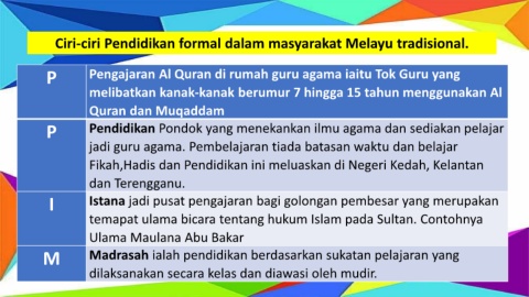 Ciri-ciri Pendidikan formal dalam masyarakat Melayu tradisional.