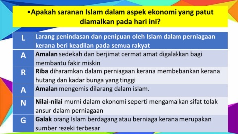 •Apakah saranan Islam dalam aspek ekonomi yang patut