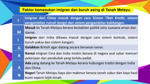 Faktor kemasukan imigran dan buruh asing di Tanah Melayu.