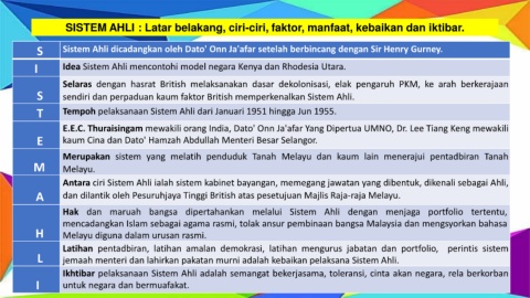 S Sistem Ahli dicadangkan oleh Dato' Onn Ja'afar setelah berbincang dengan Sir Henry Gurney.