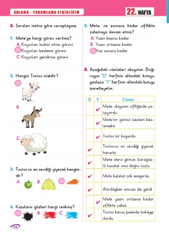 A. Soruları metne göre cevaplayınız. 5. Mete, ne zamana kadar çiftlikte