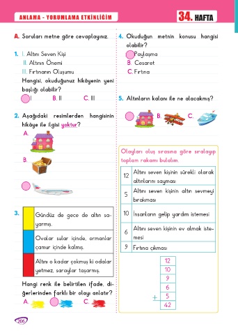 A. Soruları metne göre cevaplayınız. 4. Okuduğun metnin konusu hangisi