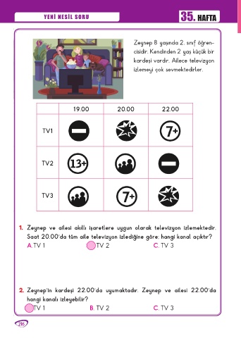 1. Zeynep ve ailesi akıllı işaretlere uygun olarak televizyon izlemektedir.