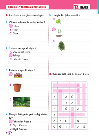 A. Soruları metne göre cevaplayınız. 5. Hangisi bir fidan olabilir?