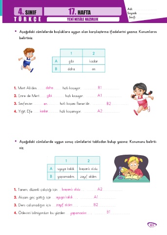 TÜRK ÇE YENİ NESİLE HAZIRLIK Sınıfı: ..................................