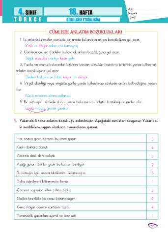 4. SINIF 18. HAFTA Adı: .........................................