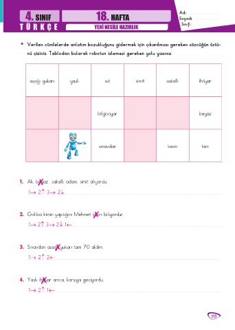 TÜRK ÇE YENİ NESİLE HAZIRLIK Sınıfı: ..................................