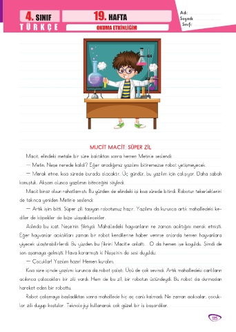 TÜRK ÇE OKUMA ETKİNLİĞİM Sınıfı: ..................................