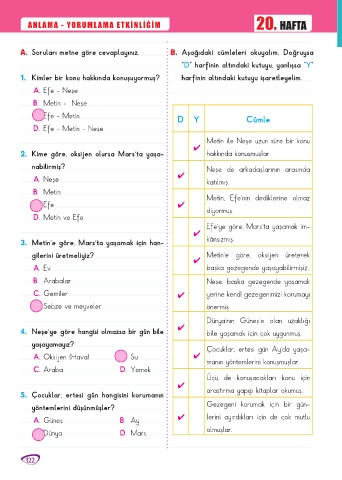 A. Soruları metne göre cevaplayınız. B. Aşağıdaki cümleleri okuyalım. Doğruysa