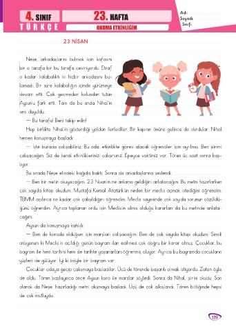 — Ben bir metin okuyacağım. 23 Nisan’ın ne anlama geldiğini anlatacağım. Bu metni hazırlarken