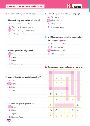 A. Soruları metne göre cevaplayınız. 5. Törende görev alan Neşe, ne yapmış?