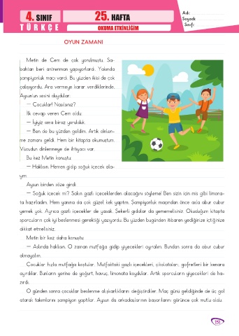 TÜRK ÇE OKUMA ETKİNLİĞİM Sınıfı: ..................................