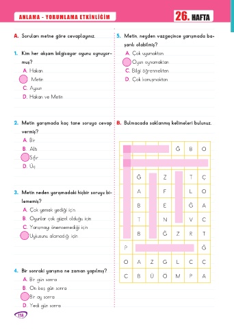 2. Metin yarışmada kaç tane soruya cevap B. Bulmacada saklanmış kelimeleri bulunuz.