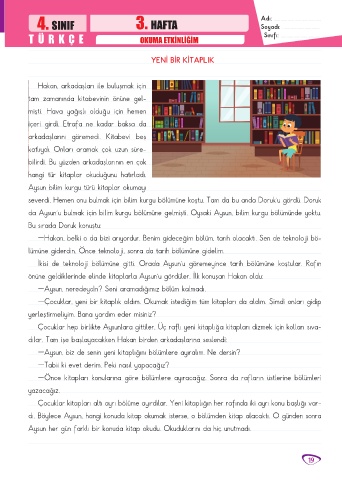 TÜRK ÇE OKUMA ETKİNLİĞİM Sınıfı: ..................................
