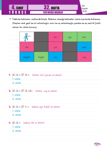 4. SINIF 32. HAFTA Adı: .........................................