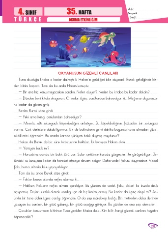 TÜRK ÇE OKUMA ETKİNLİĞİM Sınıfı: ..................................