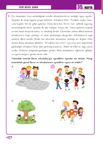 Yukarıdaki metinde Berna arkadaşlarıyla oynadıkları oyundan söz etmiştir. Hangi