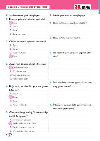 D. Aysun ve Burak 5. Ülkemizde bulunan tatil yerlerinden bil-
