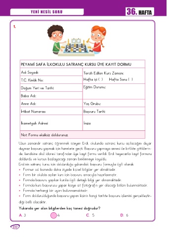 Erdi’nin satranç kursu için doldurduğu yukarıdaki başvuru formuyla ilgili olarak: