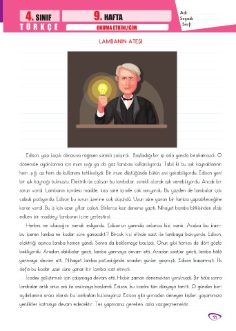 4. SINIF 9. HAFTA Adı: .........................................