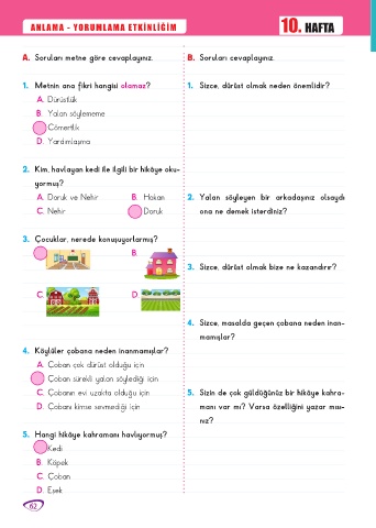 A. Doruk ve Nehir B. Hakan 2. Yalan söyleyen bir arkadaşınız olsaydı