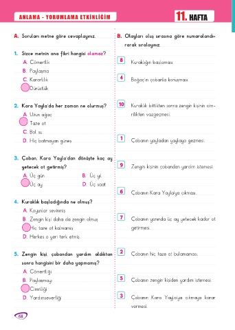 A. Soruları metne göre cevaplayınız. B. Olayları oluş sırasına göre numaralandı-