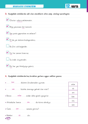 DİLBİLGİSİ ETKİNLİĞİM 12. HAFTA