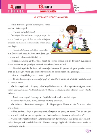 TÜRK ÇE OKUMA ETKİNLİĞİM Sınıfı: ..................................