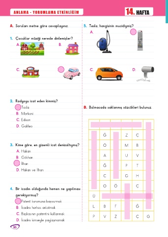 A. Soruları metne göre cevaplayınız. 5. Tesla, hangisinin mucidiymiş?