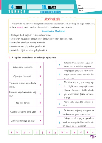 1. Aşağıdaki atasözlerini anlamlarıyla eşleştiriniz.