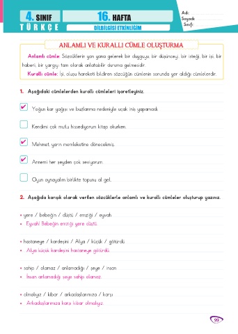 ANLAMLI VE KURALLI CÜMLE OLUŞTURMA
