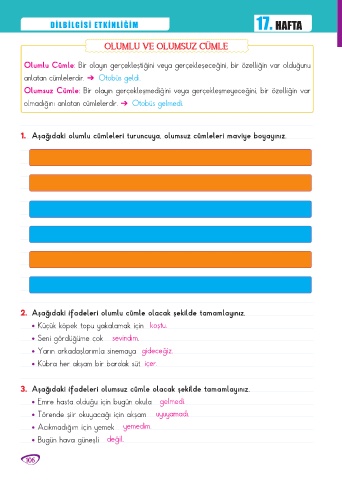 1. Aşağıdaki olumlu cümleleri turuncuya, olumsuz cümleleri maviye boyayınız.