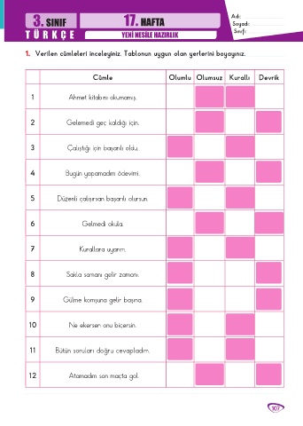 3. SINIF 17. HAFTA Adı: ............................................
