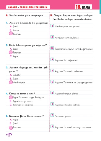 A. Soruları metne göre cevaplayınız. B. Olayları baştan sona doğru sıralaya-