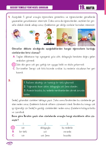 iyi öğrendiği için Sedef’in yazdığı cümlelerdeki neden-sonuç ifadelerini kolayca buldu