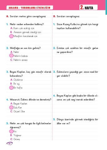 A. Soruları metne göre cevaplayınız. B. Soruları cevaplayınız.