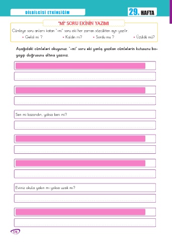 Aşağıdaki cümleleri okuyunuz. “-mi“ soru eki yanlış yazılan cümlelerin kutusunu bo-