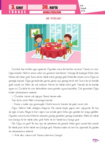 TÜRK ÇE OKUMA ETKİNLİĞİM Sınıfı: ......................................
