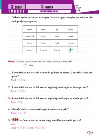 3. SINIF 3. HAFTA Adı: ............................................