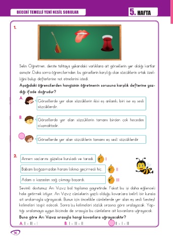 ait sıralamayla uğrayacak. Bunun için öncelikle cümlelerde yer alan eş sesli (sesteş)