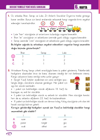 • Serap üzerinde “cimri“ sözcüğünün zıt anlamlısının yazılı olduğu vagona binecektir.