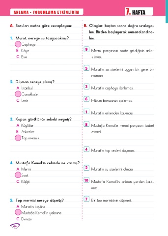 A. Soruları metne göre cevaplayınız. B. Olayları baştan sonra doğru sıralaya-