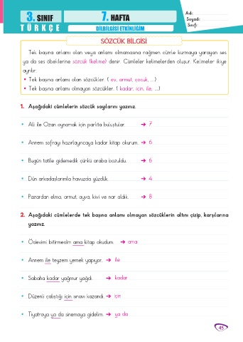 1. Aşağıdaki cümlelerin sözcük sayılarını yazınız.