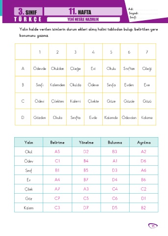 3. SINIF 11. HAFTA Adı: ............................................